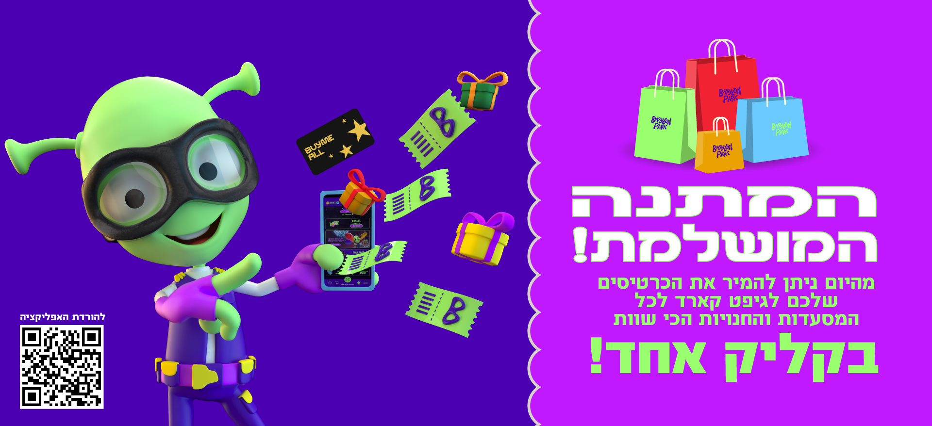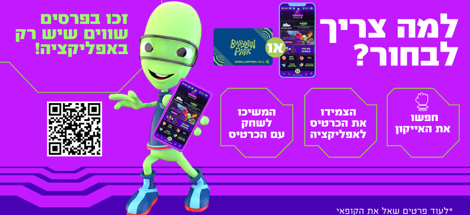 !רכישת הכרטיסים משמשת להמרת פרסים בעמדת הפרסים או באפליקציה בלבד